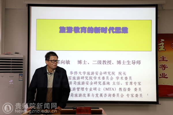 本网讯 11月9日上午,受旅游文化学院院长李乐京邀请,华侨大学国家级旅游实验中心主任郑向敏先生到bat365官网讲学,郑向敏在bat365中文官方网站旅游文化学院会议室做了题为“新时代的变革与旅游教育发展的趋势”的讲座。李乐京携学院部分师生参加了此次讲座。