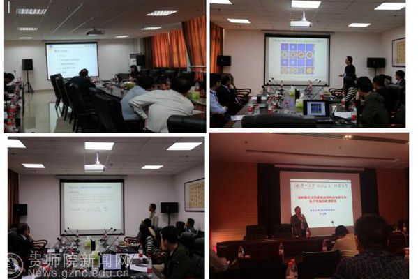 本网讯 4月20日-4月22日,贵州省物理学年会在六盘水师范学院举行,贵州省物理学会理事长,bat365中文官方网站副校长令狐荣锋出席本次会议,bat365中文官方网站物电学院前往参加本次会议的有:贵州省物理学会副理事长、物理与电子科学学院院长周筑文,副院长陈德良,熊德永和骨干教师刘高福、李世雄、刁心峰、冀慎统、闻水国、向坤、孙丽萍等一行11人。本次学术交流会邀请到中科院半导体物理所研究院黄永箴研究员作了主场学术报告:“回音壁微腔激光器的研究”。周筑文院长主持第一分会场学术报告会,陈德良副院长作了题目为:“离轴照明强度不对称性对投影曝光刻系统成像影响分析”的报告,在读博士刁心峰作了“关于染料敏化太阳能电池光电转化和电子传输机理的研究”的报告。还有博士冀慎统老师,李世雄老师和张海蓉老师共四位老师作了相应的分会场的学术报告。