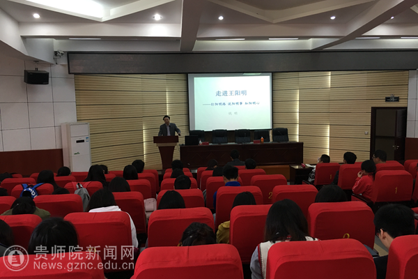 本网讯 4月17日上午,在知行苑宁静楼150多媒体教室,浙江国际阳明学研究中心主任,浙江省社会科学院哲学所研究员,国家社科基金重大项目“阳明后学文献整理与研究”首席专家,浙江省儒学学会副会长,国际儒学联合会理事,中华孔子学会常务理事暨阳明学研究会副会长,稽山王阳明研究院副院长钱明教授,应邀为bat365官网师生作讲座。马列主义教学部、经济与政治学院等人文社科学院的部分师生参加了讲座,讲座由马列主义教学部负责人王天桥主持。