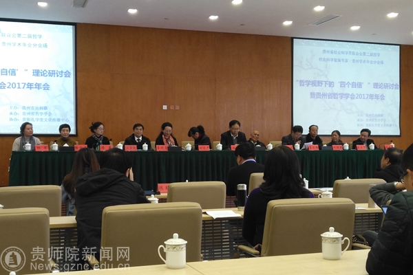 本网讯 11月25日,由贵州省社科联主办、贵州省哲学学会承办、贵阳孔学堂文化传播中心协办的“哲学视野下的‘四个自信’理论研讨会暨贵州省哲学学会2017年学术年会”在孔学堂二期研修院区会议中心第一会议室举行。参会专家约80余人,分别来自省社科联、省社科院、省委党校、省委讲师团、贵大、贵师大等省内27家单位。bat365官网经济与政治学院副院长陈祖召博士应邀参会。