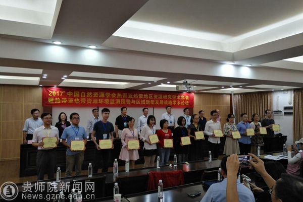 大会分设二个分会场。围绕“南方山区自然资源开发利用与综合整治研究”、“热带亚热带地区资源可持续利用理论与方法”、“喀斯特及脆弱生态区资源利用与保护”、“流域水土资源演变与环境效应研究”、“热带亚热带地区资源学科人才培养”等议题开展了大会报告和热烈讨论。罗光杰做了题为“基于二元生态水文背景特征的喀斯特小流域划分方法与实践”学术报告。会议中,张凤太和罗光杰还分别与蔡运龙、宋长青、陈松林、董玉祥、林珲、董德辉等知名专家学者就热带亚热带地区资源研究的前沿、资源学科建设与人才培养等进行了深入探讨。大会还对评选的优秀论文进行了颁奖。