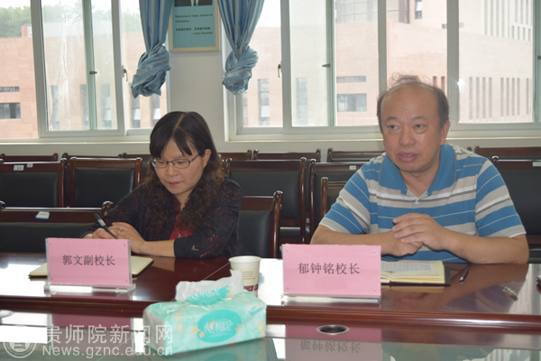 郁钟铭在认真听取外国语学院班子汇报后对外国语学院的学科建设、课程建设等方面的工作给予了充分肯定并作了重要工作指示:一是深化教育教学改革意识,外国语学院要结合学校思路,突出学科课程特色,拓展办学思路,加大课程资源建设和开发力度;二是要认真落实好大学英语的教学工作,它涉及面广、影响大,学院要高度重视,力争在十三五期间把大学英语分层、分类教学落地生根;三是抓好学科特色建设工作,做好小语种教学工作;四是要继续做好学院班子建设工作,要旗帜鲜明的讲的讲政治,“四个意识”要牢固树立。五是要做好教职工和学生的思想政治工作,发挥教职工的积极性和创造性,在涉及教职工切身利益方面要注重公平、公正、合理。