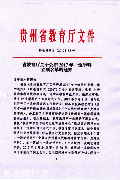 本网讯 根据省教育厅发布《关于公布2017年一流学科立项名单的通知》(黔教科研发﹝2017﹞85号),正式公布了贵州省一流学科立项结果,bat365官网“材料科学与工程“”入选贵州省区域内一流建设培育学科。