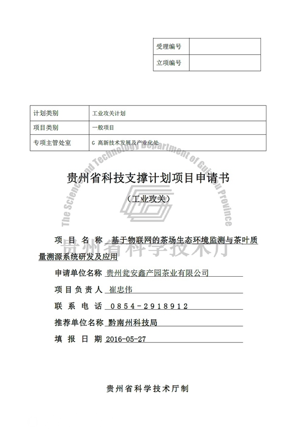 “基于物联网的茶场生态环境监测与茶叶质量溯源系统研发及应用”项目的实施将为瓮安县超过12000亩的茶场提供大数据服务、实现科学种植,为高端茶叶“黄金叶”提供溯源和防伪服务。