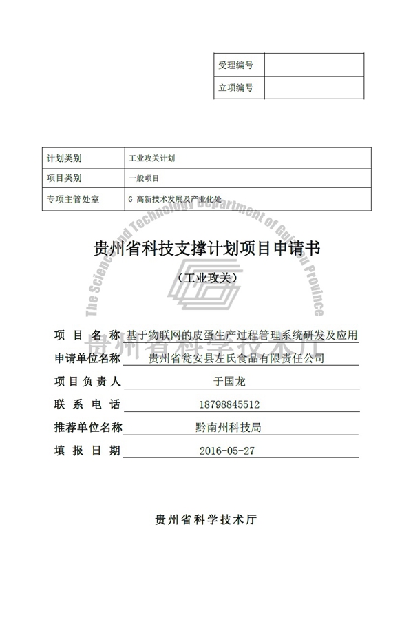 “基于物联网的皮蛋生产过程管理系统研发及应用”项目的实施将为我省知名产品“左氏德容松花皮蛋”提供生产过程的精细化管理服务,提高生产效率75%以上,保证产品质量。