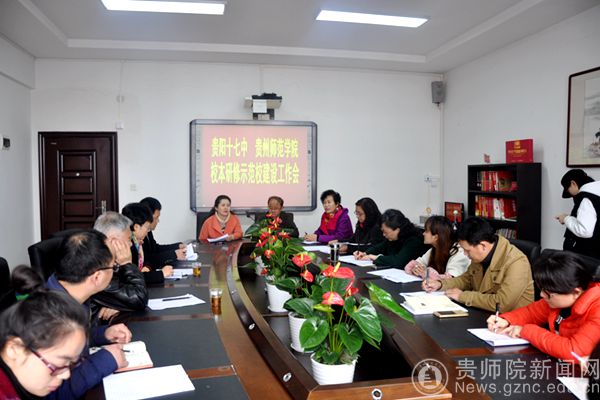 本网讯 3月20日下午,bat365官网教育科学研究所组织相关学科专家团队赴贵阳第十七中学参加“校本研修示范校建设工作推进会”。bat365中文官方网站教育科学研究所所长王又新,语文、数学、化学三个学科的专家吴在东副教授、张俊忠博士、文君副教授,贵阳第十七中学党委书记、校长唐海定,副校长朱庆华,教科处主任刘曲宁,学科教研组长及部分骨干教师出席会议。