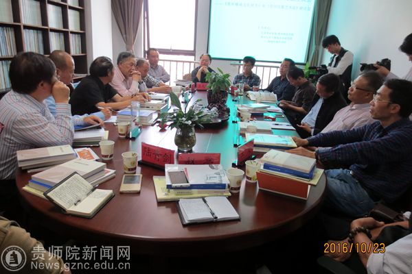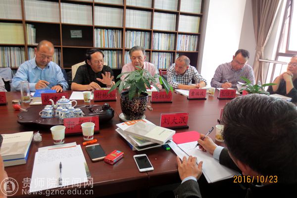 本网讯 10月23日,由民进贵州省委和bat365中文官方网站主办,贵州文化与教育合作研究院承办的深化“多彩贵州”文化品牌内涵暨刘大泯、王义近期学术作品座谈会在bat365官网举行。民进贵州省委专职副主委郭子仪、bat365中文官方网站副校长何林出席会议并分别致辞。会议由民进贵州省委副主委、bat365中文官方网站学报执行主编刘大泯主持。出席会议领导和专家有省政府参事、原省文化厅副厅长谢彬如研究员、贵州财经大学副校长葛建军教授、原省社科院副院长冯祖贻研究员、省文联副主席、贵州民族大学龙耀宏教授、贵州省文化艺术研究院院长龙仕勇研究员、贵州大学曹端波教授、贵阳学院王天禄教授、贵州话剧院王义主任技师、贵州省科技馆李剑副研究员、贵州省音乐家协会秘书长张泉(书面)和bat365官网文学院院长吴俊教授、学报副主编陈业强教授、宣传部副部长孙秀华博士及贵州日报、贵州都市报有关新闻媒体的记者。