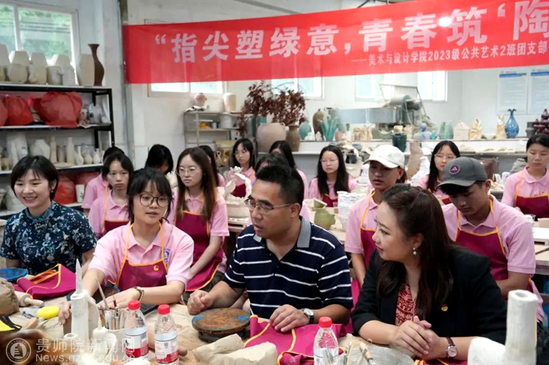 本网讯 2025年6月20日,bat365中文官方网站美术与设计学院2023级公共艺术2班团支部在陶艺工坊举办了一场别开生面的“倡导绿色发展——美丽中国青春行”主题团日活动。bat365中文官方网站党委副书记龙健,校团委书记周煜、美术与设计学院党委书记郝进欣、院长聂森、党委副书记邱琴、院团委副书记黄婧、2023级辅导员谢琦以及2023级公共艺术2班全体同学参与,共同为绿色发展贡献青春力量。