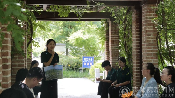 随后,行至印山书院小长廊,团支部学生代表开展“青春挺膺担当”故事分享会。通过讲述海雀村文朝荣30余年治沙造林、黄文秀扎根百坭村扶贫的感人事迹,配合沉浸式情境演绎与互动问答,引导同学们思考青春选择。从荒山变林海的奋斗史诗到扶贫路上的生命坚守,榜样故事如火种,点燃青年担当热情,诠释“把祖国和人民放心中”的使命担当。