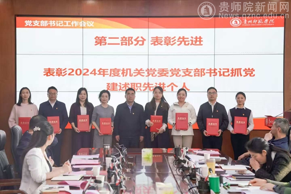 在党支部书记工作会议上,机关党委启动部署了深入贯彻中央八项规定精神学习教育有关工作,会议传达学习了《中共中央办公厅关于在全党开展深入贯彻中央八项规定精神学习教育的通知》及《中共贵州省委办公厅关于在全省开展深入贯彻中央八项规定精神学习教育的实施方案》的精神,张瑶对机关党委和机关党支部重点任务清单进行了详细解读,并从深刻领会中央八项规定的核心要义和实践要求、全面深入查找落实中央八项规定及其实施细则精神方面存在的问题、扎实推进集中整治、着力解决师生的急难愁盼问题等四个方面做了动员发言。机关党委将深刻认识开展此次学习教育的重大意义,把思想和行动统一到党中央重大决策部署上来,全面落实学习教育各项工作任务,奋力开启机关新的工作局面。