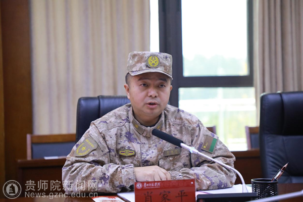 肖家平介绍了大学生兵员征集工作重点,校人民武装部部长何毅传达了贵州省征兵办、贵州省教育厅关于征兵工作、兵员预征预储工作的文件精神。参会人员共同学习了《贵州省征兵工作条例》。