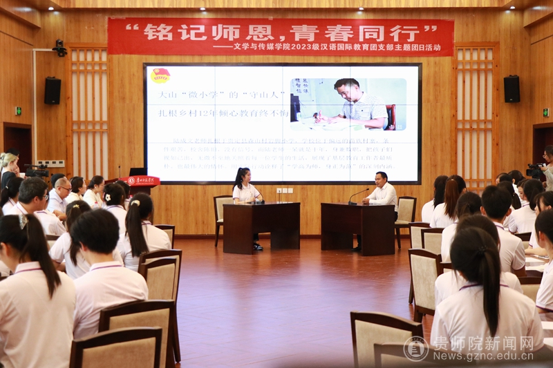 本网讯 为庆祝中华人民共和国成立75 周年华诞,贯彻落实党的二十届三中全会精神和习近平总书记在全国教育大会上的讲话精神,弘扬尊师重教的传统美德,文学与传媒学院2023级汉语国际教育团支部于9月29日开展了“铭记师恩青春同行”的主题团日活动,邀请了全国模范教师共话教育强国梦,献礼祖国华诞。学校党委书记石培新出席了本次主题团日活动并作总结讲话。校团委书记周煜、学院全体班子成员及专职辅导员参加了活动。