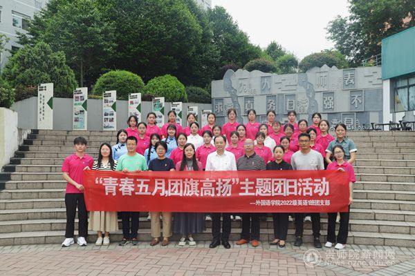 本网讯 为全面贯彻学习党的二十大精神和习近平总书记五四青年节对全国广大青年寄语精神,坚持党建带团建,进一步激发基层团组织活力,发挥主题团日活动在青年学生中思想引领和价值引领作用,密切学校领导与青年学生的联系。5月27日中午,外国语学院2022级英语一班团支部在大学生事务中心开展“青春五月·团旗高扬”主题团日活动。bat365中文官方网站党委书记石培新、外国语学院党政领导班子和专职辅导员参加。此次活动由外国语学院团委书记卢静主持。