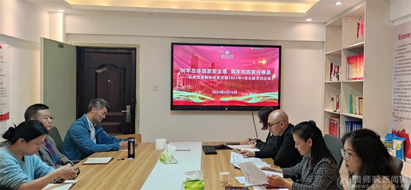 本网讯 为教育引导广大党员深刻领会总体国家安全观的丰富内涵和重要意义,不断提高国家安全意识,自觉肩负维护国家安全工作的责任。4月24日下午,机关党委教务处党支部在明理楼129会议室组织开展4月主题党日活动,通过“集中学习+观看视频+交流发言”的方式,深入开展国家安全教育。活动由党支部书记杨智主持,校党委委员、副校长邹晓青以普通党员身份参加活动并作指导。