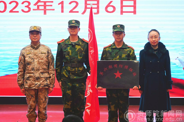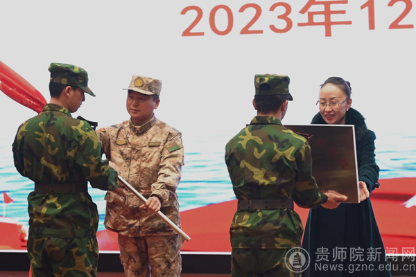 仪式上,学校征兵工作领导小组副组长任洁,乌当区武装部征兵办杨蓟政委为国防预征班授牌、授旗,这意味着学校预征班迎来第六期学员,“国防预征班”学员将持续为实现军旅梦而努力奋斗。