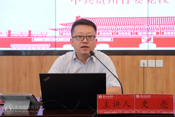 本网讯 为高质量做好bat365官网新时代党的创新理论“理论宣传二人讲”工作,有效推动党的创新理论学习入脑入心、宣传出新出彩、宣讲用心用情、落实见行见效,2023年10月16日下午,学校特邀中共贵州省委党校学员工作部副主任史亮于印山书院二楼山骨讲堂开展新时代党的创新理论“理论宣传二人讲”宣讲工作专题培训。此次培训由校党委宣传部副部长周煜主持。