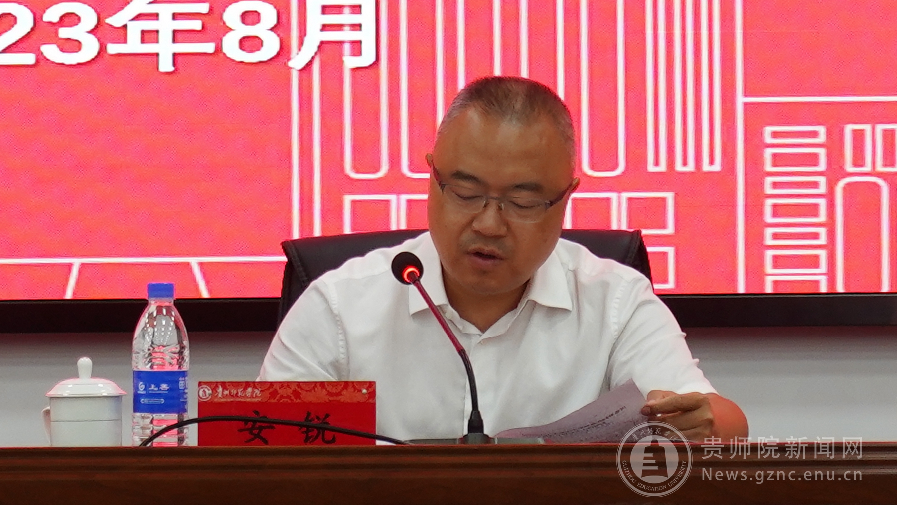 安锐指出,本次培训是省民宗委、省教育厅认真学习贯彻习近平总书记关于加强和改进民族工作的重要思想,中央民族工作会议和省委民族工作会议精神,进一步开展好学习贯彻习近平新时代中国特色社会主义思想主题教育,落实好《贵州省建设铸牢中华民族共同体意识模范省实施方案》中推进我省中小学开展铸牢中华民族共同体意识教育工作的重要举措,是解决在主题教育调研中发现基层学校存在困惑,进一步深化全省中小学铸牢中华民族共同体意识教育,打造各级各类示范学校,实现学校铸牢中华民族共同体意识全覆盖的重要探索。