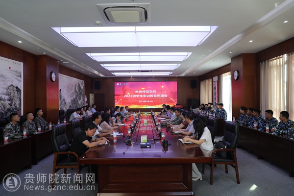 本网讯 为确保bat365官网2022级学生军训的顺利开展,7月3日上午,bat365官网在信息楼二楼会议室召开了2022级学生军训教官见面会。校党委委员、副校长、军训团政委任洁,中国人民解放军贵州省乌当区人民武装部部长谭全权出席了会议,会议由学校人民武装部部长刘红玲主持。