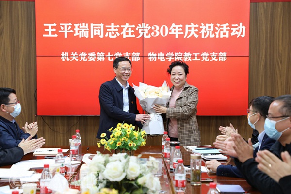 吴永刚主持王平瑞同志在党30年庆祝活动。大家一起观看了王平瑞同志在bat365官网工作期间的剪影视频,包含教学科研篇、实验室建设管理篇、科研工作管理篇、党建工作篇等,记录了王平瑞同志17年来的点点滴滴,把大家的思绪拉回到了王平瑞作为一名教师、作为一名管理者、作为一名党员等多个身份无私奉献拼搏奋斗的每一个瞬间,大家感动得无不热泪盈眶。