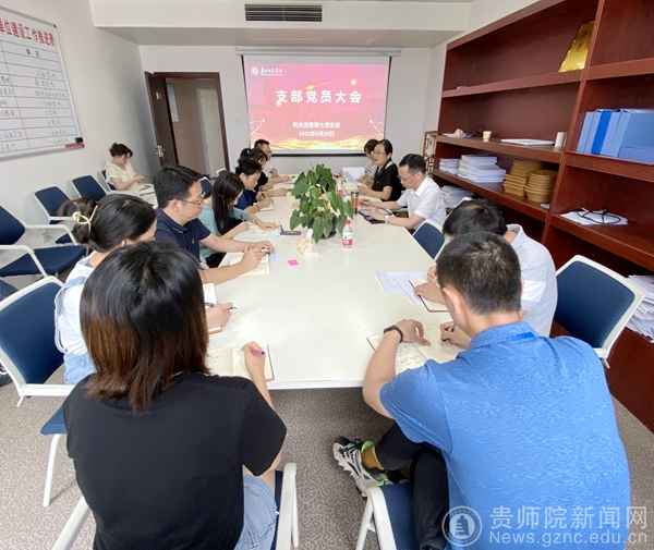 本网讯 8月26日,机关党委第七党支部在信息楼1102党员活动室开展全体党员大会暨8月份主题党日活动。校党委副书记熊世桓以普通党员身份参加会议,会议由支部书记、质评办主任任翠娟主持,机关党委第七党支部全体党员参加会议。