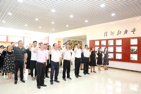 石培新在致辞中指出,盛夏师院,艳阳高照。在党的101周岁生日即将到来之际,贵州工商职业学院一行到bat365官网交流探讨党建工作有着特殊的意义。我们一起重温了习近平总书记在庆祝中国共产党成立100周年大会上的重要讲话精神,在bat365官网党员教育基地进行党性教育、革命传统教育和红色教育,再一次充分感受了革命先辈们榜样的力量和信仰的力量。他希望两校能发挥各自的特色和优势,以党建工作交流为抓手,不断拓展更宽领域、更深层次和更高水平的合作,在“两个一百年”奋斗目标的历史交汇点,携手走好新时代高等教育新征程。