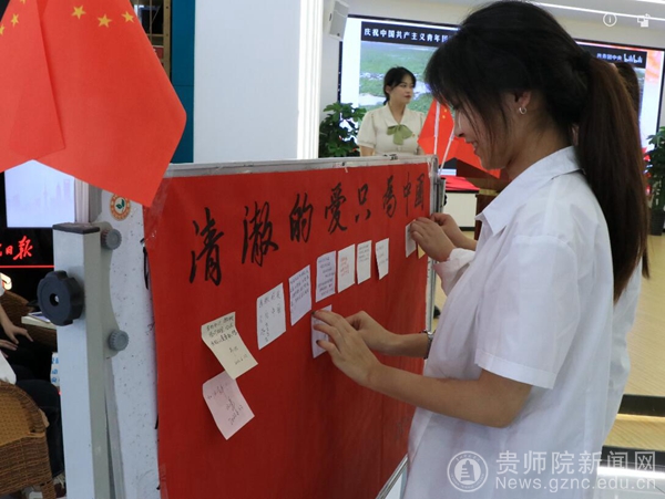 活动最后,与会领导、老师与同学们共同写下自己对祖国的美好祝愿。“清澈的爱,只为中国”活动虽然落下帷幕,但同学们仍会以赤子的情怀,继续坚定不移地走在热爱祖国的路上。无论在哪里,永怀一颗爱国心;无论在何时,用心谱写爱国情。