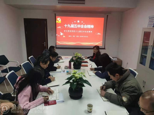 郭文传达党的十九届五中全会会议精神,对党的十九届五中全会基本概况、党的十九届五中全会公报解读、以党的十九届五中全会精神进行了宣讲,对国家“十三五”期间在政治经济文化、扶贫攻坚、疫情防控、生态文明建设等方面的成绩进行了介绍,让大家切身感受到国家和贵州经济社会发展快速发展给我们带来的幸福感、获得感和满足感;同时讲到国家“十四五”发展规划的目标和二零三五年远景目标,明确了建设创新型国家、基本实现现代化经济体系、形成对外开放新格局、建设国防和军队现代化等目标,让我们感受到祖国在百年未有之大变局的背景下统筹谋划国家发展战略,进一步建设社会主义现代化国家,使国家更加富强,人民生活更加美好。