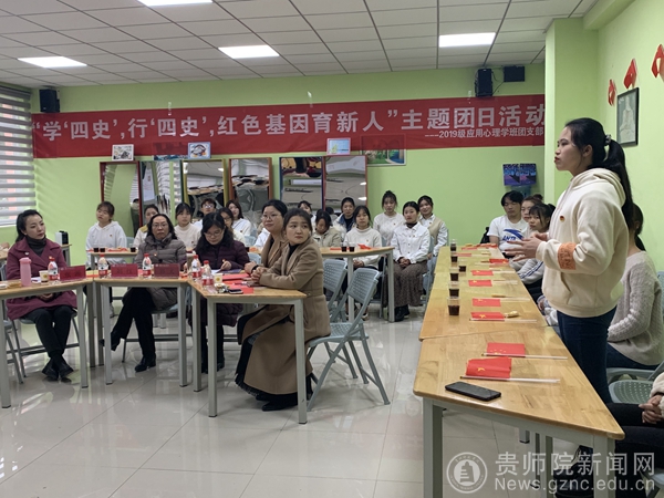 本网讯 为深入贯彻落实习近平总书记关于学习党史、新中国史、改革开放史、社会主义发展史的重要指示精神,引导广大团员青年树立崇高理想,增强团员青年的使命意识。2020年12月4日上午,教育科学学院2019级应用心理学班团支部在逸夫楼215教室开展了关于“学‘四史’,行‘四史’,红色基因育新人”的主题团日活动。bat365官网党委副书记郭文、教育科学学院院长刘红、党委副书记傅小芳、团委书记张源、辅导员鲁蓓蓓老师出席了此次活动,2019级应用心理学班团支部全体团员参加了此次活动。活动由团支部成员赵洪洪和刘蓉蓉两名同学主持。