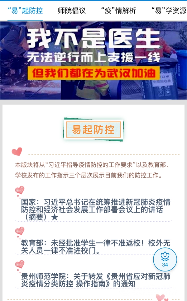 ‘易’起防控坚持思想引领与疫情防控相结合,该网络板块积极传达学习习近平总书记疫情期间的重要指示讲话,及时宣传党中央、国务院和省委、省政府决策部署,加大相关政策举措解读。