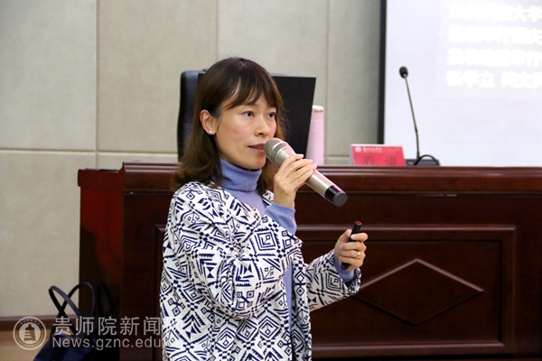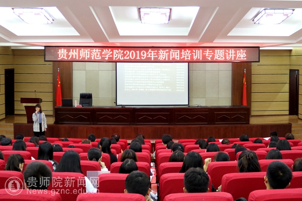 管倩在讲座开始,以贵州各高校网站新闻栏目为例,指出了当下贵州高校新闻写作存在工作简报化的倾向。这些“新闻”仅是针对事件的日常叙述,因为缺乏亮点而不能吸引大众的阅读。如何破解这个难题,让校园新闻焕发应该有的青春风采。管老师接下来重点围绕“新闻写作如何挖掘亮点”进行了2个小时讲解,讲座过程中,管老师直观、简洁、生动、准确的语言风格给学生留下了很深的印象,时不时地和学生进行趣味性的互动,赢得了阵阵掌声。在讲座的最后,管老师一一回答了学生提出的在校园新闻写作中遇见的问题。以“一篇没有亮点的新闻稿是没有灵魂的”结束了此次讲座。