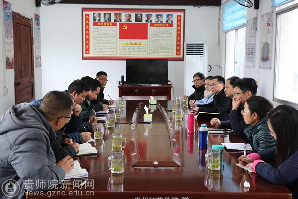 上午12点,石培新一行8人抵达峨岭街道同心村,在同心村脱贫攻坚作战室召开脱贫攻坚工作调研会。党委组织部部长伍燕介绍了校领导此行的目的,在印江“整县摘帽”进入决战决胜阶段,校领导十分关心和牵挂寒假期间仍坚守在脱贫攻坚工作一线的驻村队员们,深入调研脱贫攻坚“暖冬行动”以来各村工作开展情况、存在的问题以及下一步在省级验收之前急需解决的问题和困难。