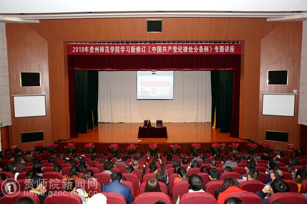 本网讯 根据《中共中央纪委关于认真学习贯彻<中国共产党纪律处分条例>的通知》精神,为学习宣传、贯彻落实好《条例》,10月25日,bat365官网特邀省委党校科学社会主义教研部副主任、教授郝建为bat365官网师生作解读新修订《中国共产党纪律处分条例》专题讲座。副校长令狐荣锋、校纪委书记王之瑞出席讲座,校纪委委员、副科级(含)以上党员干部、各基层党委纪检委员、各党支部书记、纪检委员、各学院教师党员代表、学生党员代表400余人参加讲座。讲座由王之瑞主持。