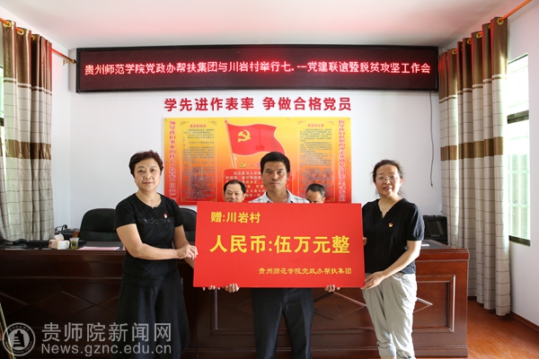 6月28日,在川岩村脱贫攻坚座谈会上,石培新与参会党员一起重温入党誓词,bat365中文官方网站组织部部长伍燕上了一堂精彩的微党课示范课。bat365中文官方网站党政办主任芦军、组织部长伍燕一同将社会资助的伍万元“农村老旧住房农用电改造款”捐赠给川岩村。