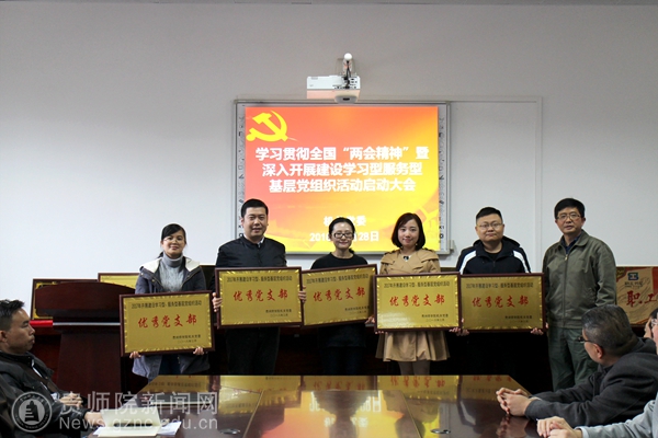 会议通报了机关党委2017年开展建设学习型、服务型基层党组织活动的评优情况,为获得优秀党支部称号的图书馆党支部、科研处党支部、组织部党支部、宣传部党支部、学工部党支部颁发了奖牌。