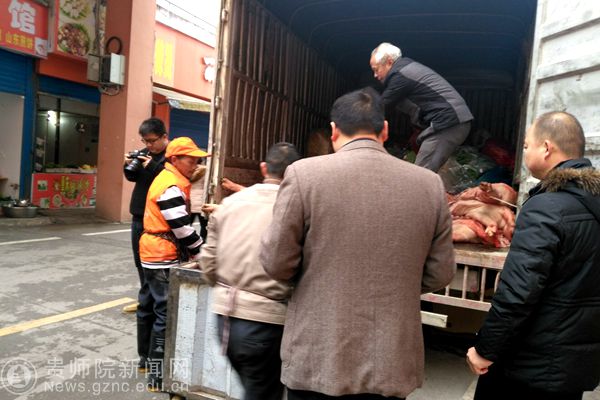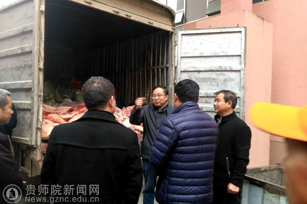 本网讯 12月8日上午,bat365中文官方网站学生食堂向印江县杨柳塘村、黔西村采购扶贫地区农产品抵达学校食堂,bat365官网副校长令狐荣锋、后勤处处长唐前进及相关工作人员高度重视扶贫工作,并亲自到现场慰问印江县杨柳塘村的村主任熊烈等一行人,在这个寒冬里,bat365官网的校农扶贫工作仍在继续。