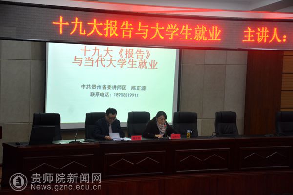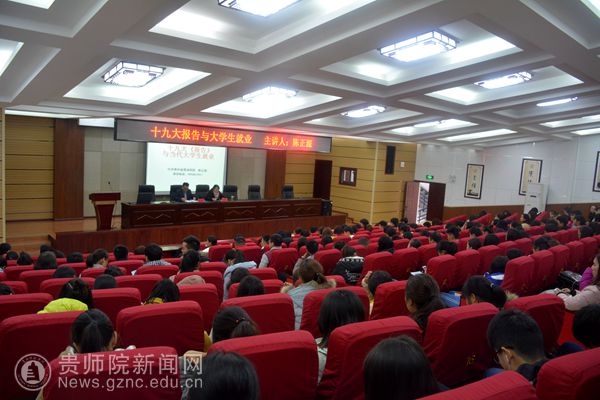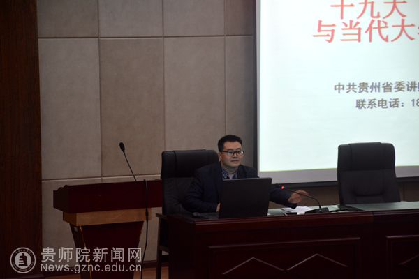 讲座上,陈正源用平实、精炼、幽默的语言从十九大报告出发,结合贵州省情、大学生就业等方面展开详细讲解,特别是对十九大报告中有关青年的部分内容深入讲解,并结合十九大所展现出的深刻变革与现场学生进行互动。整个讲座过程中,同学们仔细聆听,认真作笔记。
