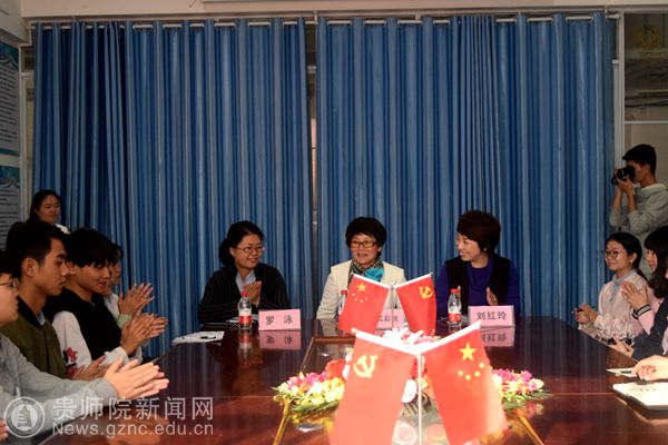本网讯 为深入贯彻学习领会党的十九大精神 ,10月25日下午,外国语学院党委邀请校党委副书记令狐彩桃在外国语学院党群工作站为党员学生、入党积极分子上《学习党的十九大精神》的专题党课。外国语学院党委副书记刘红玲、副院长罗泳、辅导员老师和学生党员、入党积极分子参加学习,聆听党课。
