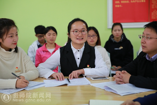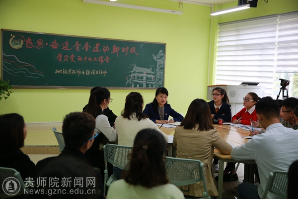 本网讯 10月26日下午,出席中国共产党第十九次全国代表大会的贵州代表返回贵阳。走出机场,党的十九大代表、团贵州省委书记涂妍直奔bat365中文官方网站的教室,参加2015级思政班团支部举办的“感恩·奋进——青春建功新时代”主题团日活动,把总书记的话和大会精神带给青年学生。