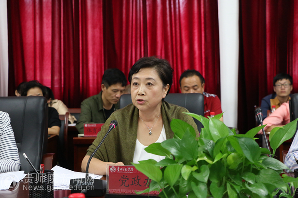 在认真听取了各部门负责人的发言后,令狐彩桃对本次会议进行了总结。她就进一步提高新闻宣传和舆情管理提出了三点意见:一是统一思想认识,切实增强做好高校宣传思想工作的责任感和使命感,旗帜鲜明宣传正能量,进一步提高bat365官网宣传舆论工作的针对性、实效性,讲好师院故事、唱响师院声音,塑好师院形象,为党的十九大召开营造良好的宣传舆论氛围;二是具体从事新闻工作的队伍要具有新闻的敏感性,既要关注学校改革发展的大事,也要关注师生关心的问题,从而凝聚人心、鼓舞士气、促进发展,不断开创学校宣传思想工作新局面;三是进一步改进新闻工作作风和文风,要着眼于师生思想、工作、生活实际,汲取正能量,围绕新闻舆论工作的重点,关注学校工作与生活。