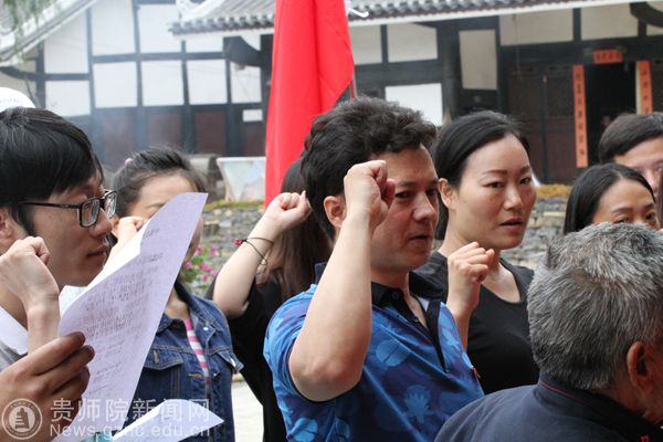 本网讯 为抓牢抓实“两学一做”学习教育常态化制度化建设,积极响应省委书记、省人大常委会主任陈敏尔提出的向时代楷模学习的号召。6月3日,bat365中文官方网站艺术学院40余名师生党员代表共赴遵义市播州区平正仡佬族乡团结村,开展学习黄大发同志先进事迹党建活动。