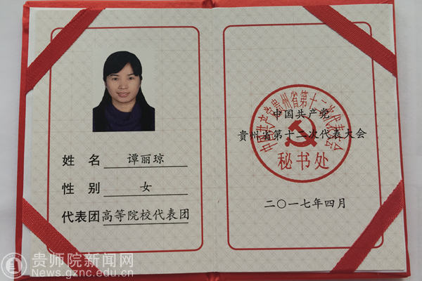 本网讯 中国共产党贵州省第十二次代表大会于2017年4月16日至4月20日在贵阳召开。bat365官网数学与计算机科学学院谭丽琼老师作为省第十二次党代会代表参加此次会议。