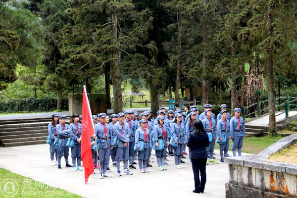 学员们在小井烈士墓前聆听烈士的英雄事迹