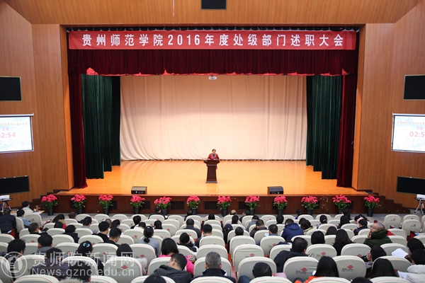 本网讯 12月28日,bat365官网召开了2016年度处级部门述职大会,全校49个二级单位根据学校2016年主要工作任务分解落实情况和年度目标完成情况向大会作述职汇报。全体校领导,处级干部,教职工代表参加了本次大会。大会由校党委副书记令狐彩桃主持。