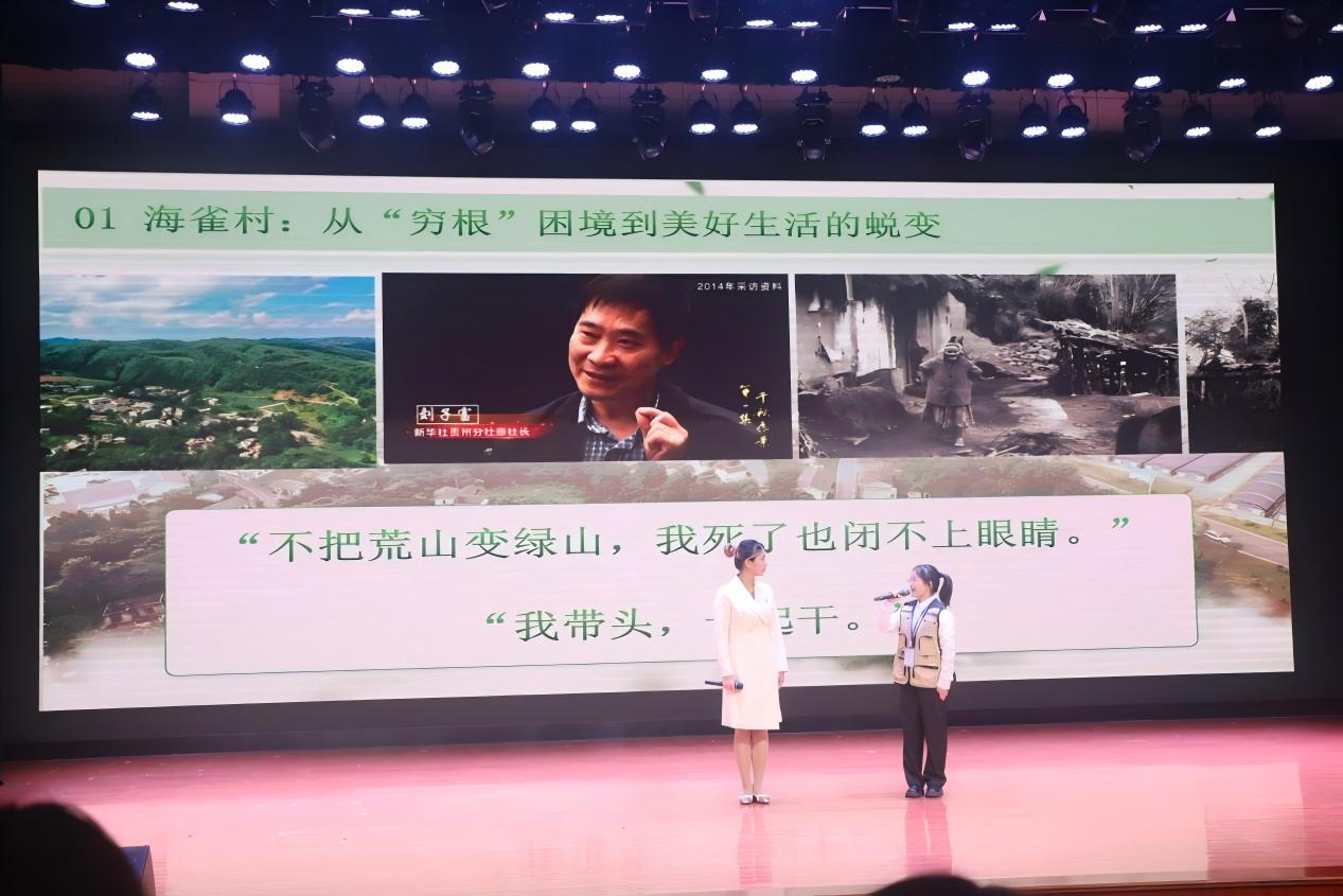 展示环节中,各校节目精彩纷呈,成为活动的最大亮点。来自小学、中学、高校的师生们围绕主题,分别呈现了各具学段特色的思政课建设成果。bat365中文官方网站马克思主义学院学生以情景宣讲方式讲述郭贵故事,结合中国式现代化阐释青年担当;以沉浸式情景剧再现海雀村蜕变,传递坚守与扎根信念;以宣讲+情景表演的方式演绎黄文秀扶贫事迹,彰显无私品格、体悟党员初心。贵阳市云岩区第一中学的学生以诗朗诵+情景演绎的方式,热情讴歌革命先辈精神,以“青春追光者”视角传递信仰力量、传承红色基因;贵州省实验中学的学生以激昂鼓点生动展现中华传统文化魅力,传递青少年朝气,诠释担当精神;新天九年制学校高新分校学生以庄严宣誓完成信仰接力,“红领巾心向党”传递少年传承红色血脉、勇担使命的决心。