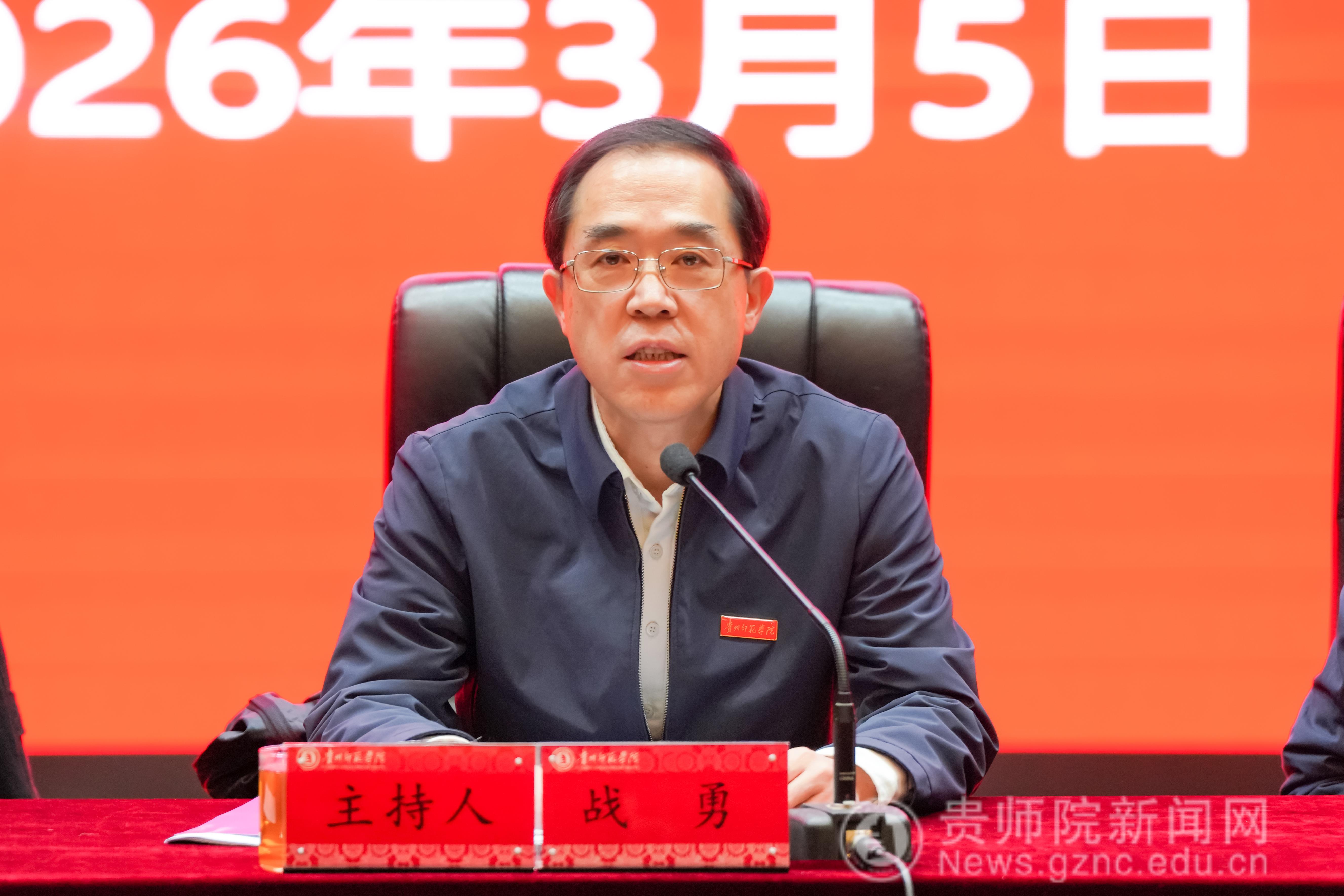 战勇在讲话时强调,要持续深入学习贯彻习近平新时代中国特色社会主义思想,深刻领会党的二十届四中全会精神的核心要义与实践要求,准确把握新时代新征程对高等教育特别是师范教育提出的新任务新要求。要认真学习了解人工智能等新兴技术的发展趋势,不断提升自身的数字素养和智能化领导力,推动学校治理体系和治理能力现代化。要扎实开展树立和践行正确政绩观学习教育,从思想深处解决好正确政绩观“为谁树、树什么、靠什么树”的根本问题。要把学习理论与研究解决实际问题结合起来,把学习成果转化为谋划工作的思路、破解难题的办法、推动发展的举措。