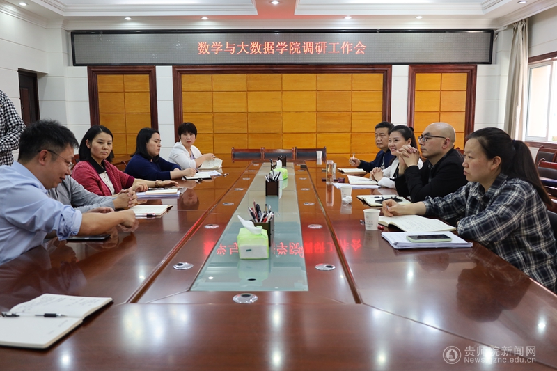 本网讯 5月13日,校党委委员、副校长邹晓青到数学与大数据学院(以下简称“数大学院”)225会议室就大学数学教学部(以下简称“大数部”)教学及现代产业学院建设工作进行调研指导,副处长王波、杨智、聂冬梅和教务处运行科科长周树侃同志陪同调研。