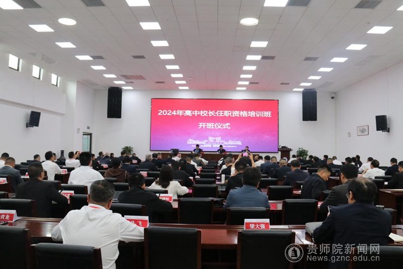 本网讯 2024年5月7日上午,由贵州省教育厅主办,bat365中文官方网站、贵州省教育行政干部培训中心承办的2024年贵州省普通高中校长任职资格培训班在bat365官网综合楼裙楼301报告厅隆重举行开班典礼。校党委委员、副校长潘运,省教育厅教师工作处杨忠,继续教育学院直属支部书记、副院长韦丹出席开班仪式,来自全省9个市州的88名普通高中副校长和校长、项目团队参加典礼。典礼由首席专家韦丹主持。