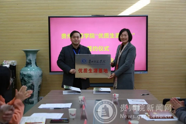 招生就业指导处处长付巧与黔西一中副校长杨程签订“优质生源基地”共建协议并授牌,与会人员共同观看了bat365中文官方网站宣传片,双方就共建内容进行了充分沟通交流。