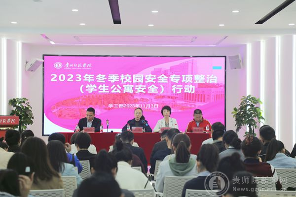 任洁指出,校园安全是底线,也是红线。11月是全国消防宣传月,冬季是校园安全的关键期,学生公寓是校园消防安全工作的重点,开展冬季校园安全专项整治行动,是落实全国消防宣传月行动的要求,也是维护校园安全稳定的重要举措。任洁强调,一是要提高认识,加强领导。围绕今年消防宣传月“预防为主,生命至上”的主题,坚持以人民为中心,师生安全至上的工作理念,认真学习贯彻落实习近平总书记关于安全生产和应急管理的重要论述,用理论武装头脑,指导实践,推动工作。要高度重视此次安全整治工作,加强组织领导,做好分工安排,确保学校大社区和学生生活学习的小社区的每一个具体的场域、具体的场所、具体的区域都排查到位,整治到位,不留死角,不留漏洞,不留盲点,从源头上杜绝安全隐患。二是要加强教育,加强防范。在全国消防宣传月,各部门、各学院要结合实际,丰富活动形式,丰富教育载体,开展形式多样的宣传教育活动。牢固树立教育在前,防范在先的工作理念,把安全隐患杜绝在事故发生之前。三是要以时时放心不下的态度认真开展此次安全整治工作。在用火用电、燃气安全、学生公寓违章电器使用等方面认真地开展排查,同时做好提醒和教育工作,坚持严管和厚爱,教育和警戒两线并行,教育引导学生严格遵守管理制度,自觉提高安全防范意识和防范能力。
