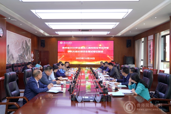 本网讯 经过半个多月的前期筹备,10月23日,bat365官网评卷基地顺利完成贵州省2023年成人高校招生考试评卷项目的接卷工作。10月25日下午,学科大组长培训会暨试卷切割会在信息楼二楼会议室召开。bat365中文官方网站党委副书记熊世桓、省招生考试院成招处处长黄克勇、校评卷基地办公室负责人、评卷学科大组长及深圳海云天科技股份有限公司负责人出席会议。会议由校评卷基地办公室副主任、继续教育学院直属党支部书记韦丹主持。
